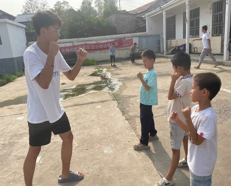 在课上,同学们也踊跃回答实践团成员提出的国防问题,并得到了实践团成员的高度肯定和表扬。课程的最后,实践团成员在户外教给孩子们一些基本的行列动作,虽然孩子们基本都是第一次接触这些行列动作,但是在实践团成员的细心教学下,他们也做的有模有样。