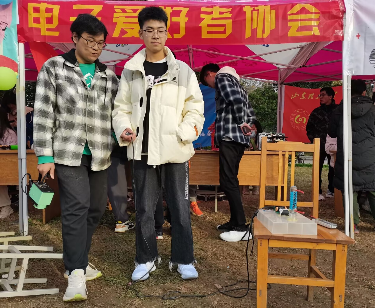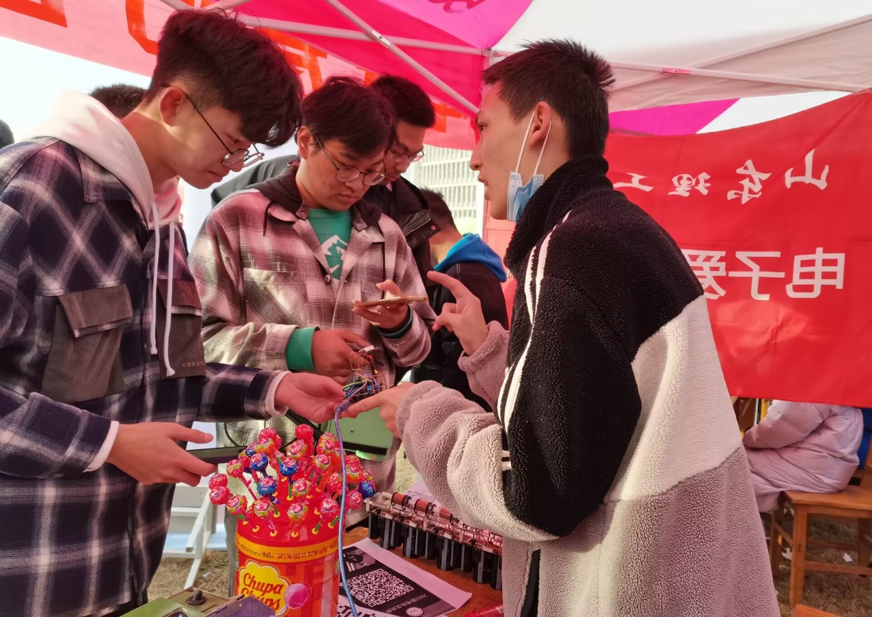 电子爱好者协会作为fun88官网体育科技型社团,拥有众多的科研成果,社团负责人将科研成果进行摆放,以便于向同学们展示电子爱好者协会的科技研究成果。同时,为了吸引同学们的注意,志愿者们还精心准备了各种小游戏以及对应的奖励。