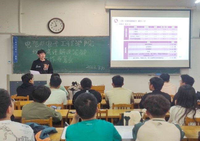 会议伊始,电气2102班班长于聪毅为22级班干部代表们就《公司员工综合考评实施细则》进行解读与答疑。他从思想品德素质、学业成绩、身心素质、创新实践能力四个方面针对细则进行说明,并指出综合素质测评关系到同学们的切身利益,要求全体班委高度重视,尤其注意成果时间节点,保证填报数据真实准确,及时提供相关证明材料,由辅导员进行审核等,确保各项工作有序开展,坚持公平公正原则,切实保障员工权益。