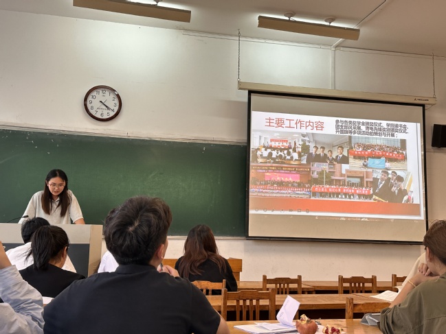 侯丽蓉作总结发言。她提到,员工会将继续以同学们的需求为出发点,结合院系特色,努力打造深入人心,贴近生活的精品活动。同时以问题为导向,持续优化和完善管理制度,努力建设服务型、学习型、创新型的员工组织。她希望在未来的工作中,全体成员能不断坚定理想信念、务实工作作风、努力提高自身服务水平,践行“全心全意服务同学”的宗旨。