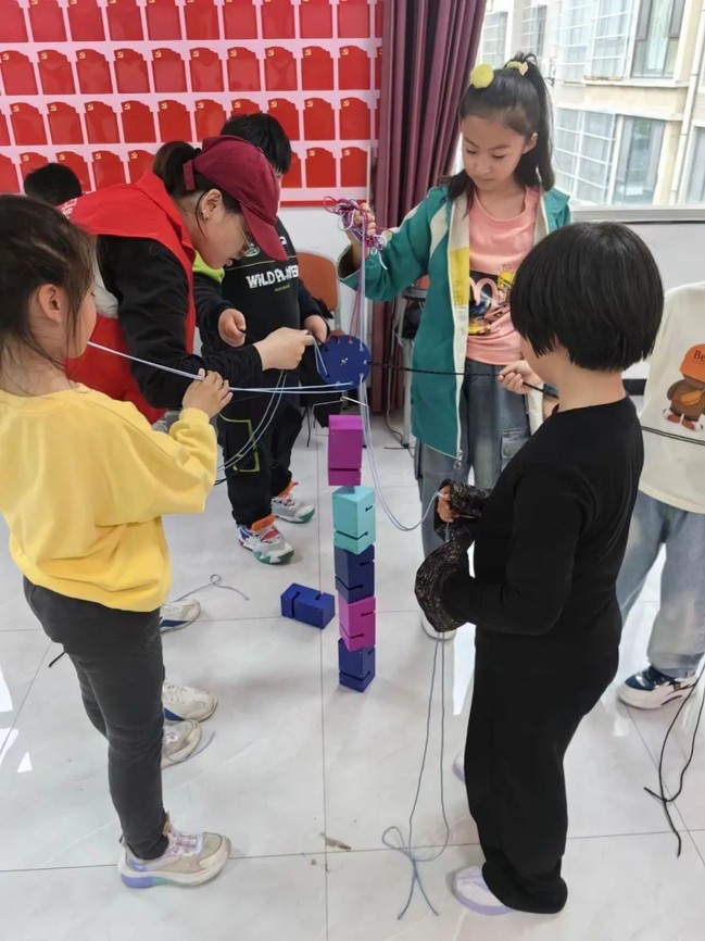 在合力建塔环节,小朋友们了解充分沟通对团队目标实现的重要意义,明白不抱怨,协作才能共赢。