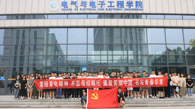最后,全体党员手持“发扬青电精神,不忘母校嘱托,建设美丽中国,书写青春华章”的条幅,在7号实验楼下合影留念。