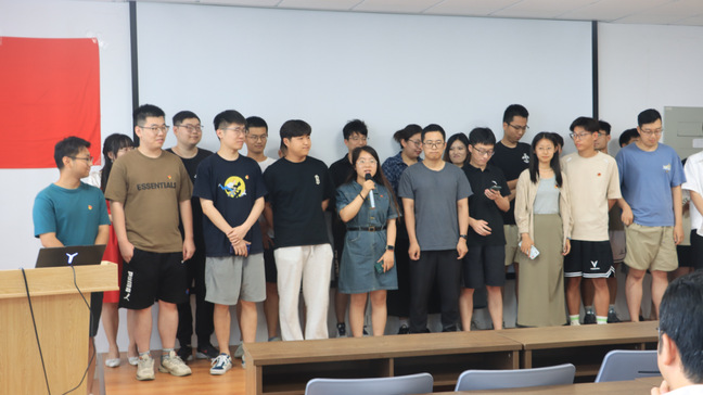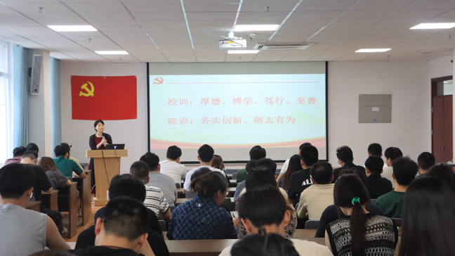 在这次党日活动中,播放了研究生辅导员谢婕老师作词的《新时代老员工就业之歌》,勉励研究生珍惜就业岗位,在新的人生起点上,积极作为,奋力拼搏,争当有理想、敢担当、能吃苦、肯奋斗的时代好青年,早日成长为国家的栋梁。