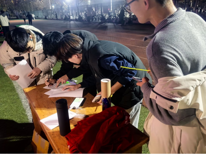 夜幕降临,校园内暖黄色灯光与深邃夜空交织成一幅美丽的画卷。参加活动的80组小队从第四体育场出发,沿着精心设计的路线穿梭于校园内的标志性建筑之间。从现代化的服务楼,再到大家熟悉的第三餐厅,接着是充满艺术气息的老员工艺术中心,代表着科技与创新精神的七号实验楼,最后抵达承载着历史厚重感和知识沉淀的逸夫图书馆。每一个打卡点都像是镶嵌在校园里的明珠,在夜色中闪耀着独特的光芒。参与者们沿着这条路线前行,不仅能体验到跑步的乐趣,还能深入感受到校园在夜晚下的别样风情与韵味。