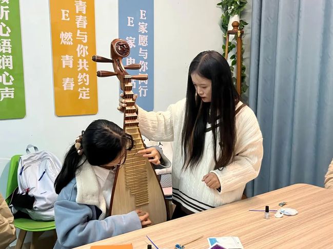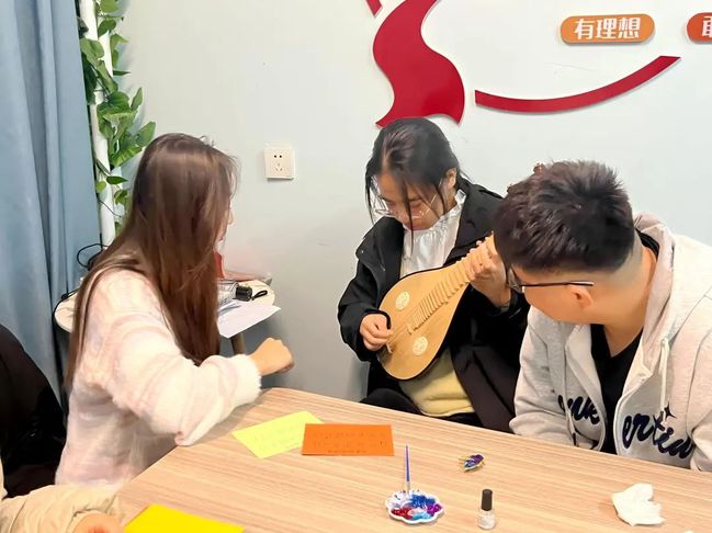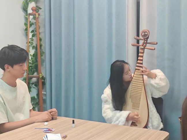随后,支部成员亲身学习弹奏中国传统乐器——琵琶和柳琴,随着所学曲目《茉莉花》的回响,不仅培养了支部成员的音乐素养和审美能力,还使他们更加深入地理解和欣赏中国传统音乐,进而增强对中华传统文化的认同感与归属感。