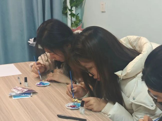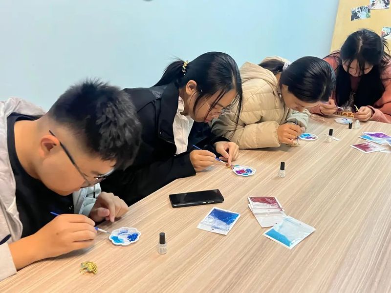 烧蓝是古法金属首饰制作的核心技艺,是在金属胎体上填充色釉后通过高温烘烧而成。支部成员用画笔点染色釉,小心翼翼地将作品晕染,将温情倾注。支部成员通过亲身体验制作传统手工艺品,感受中华传统艺术的韵味和风华,在绘就一个个烧蓝作品中增强对文化底蕴的认同。