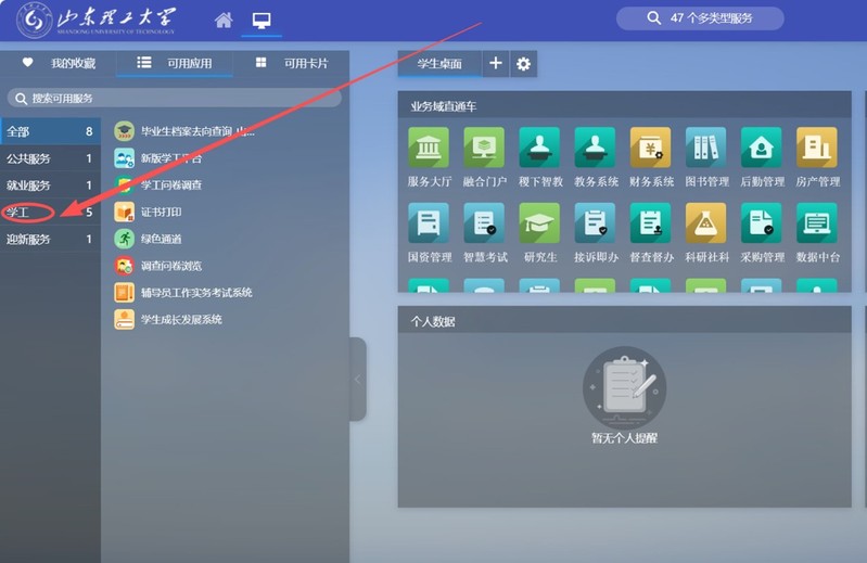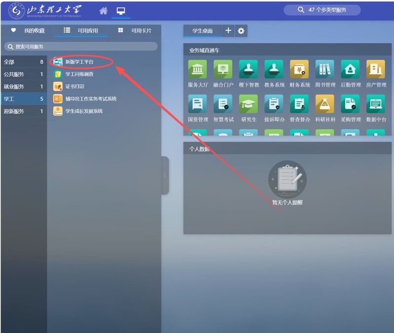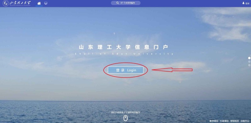 1.进入山东理工大学信息门户并登录。(https://ehall.sdut.edu.cn/new/ehall.html)
