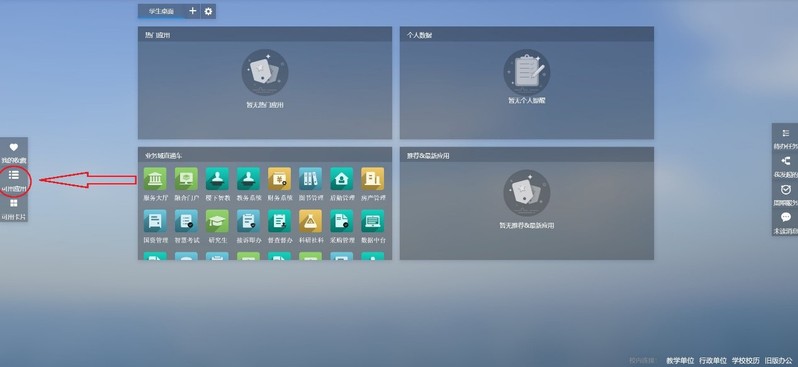 2.进入页面点击左侧“可用应用”。
