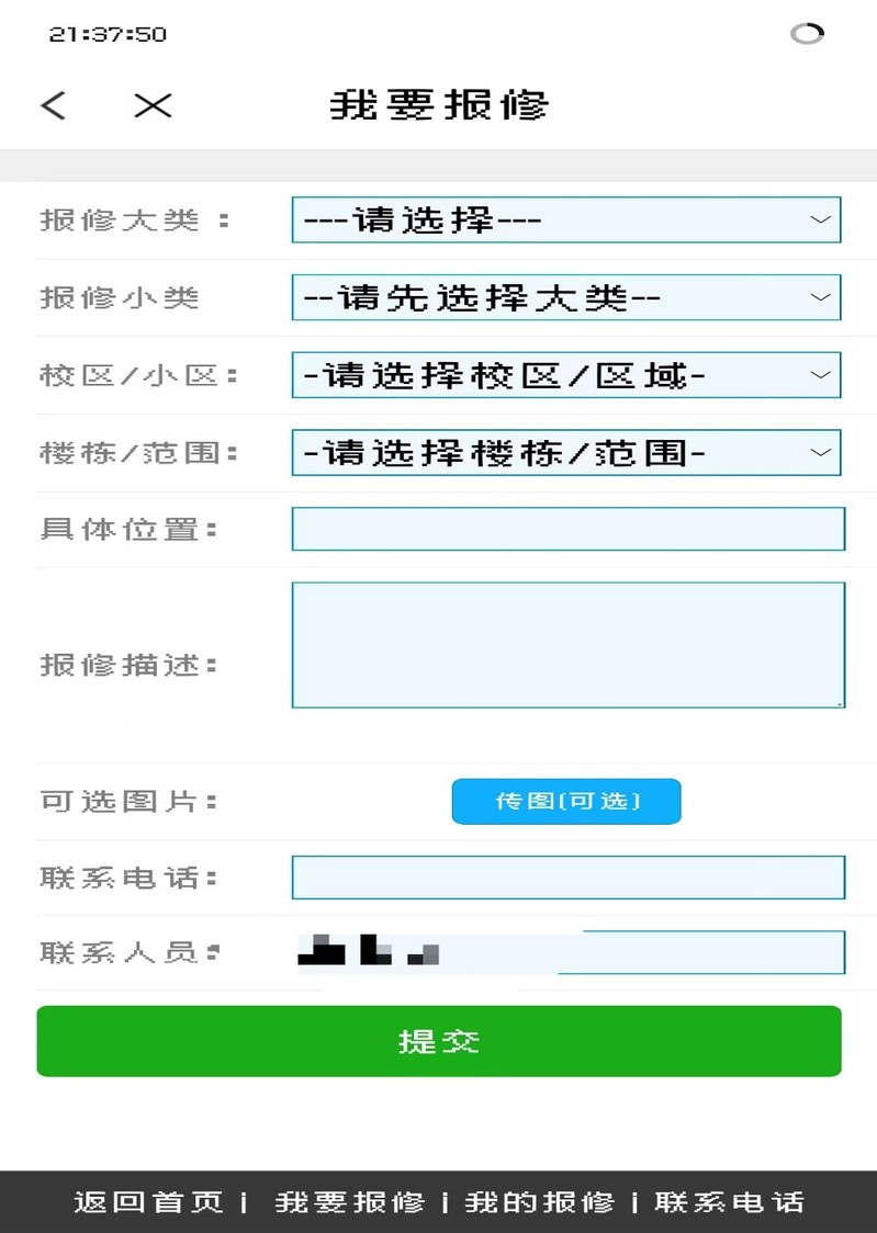 依次选择“报修大类”“报修小类”“校区