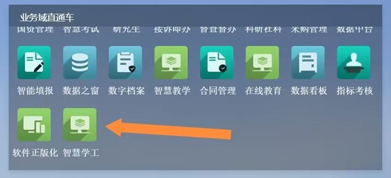 2.业务域直通车一栏底部找到智慧学工