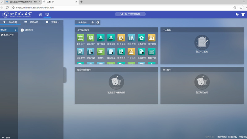 1.登录山东理工大学信息门户(https://ehall.sdut.edu.cn/new/ehall.html)