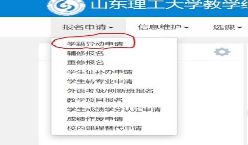 (1)员工登录教学综合信息服务平台,在左上角报名申请中,选择学籍异动申请(如下图)