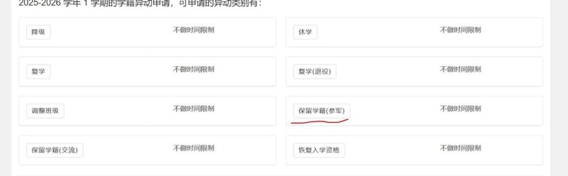 选择保留学籍(参军)